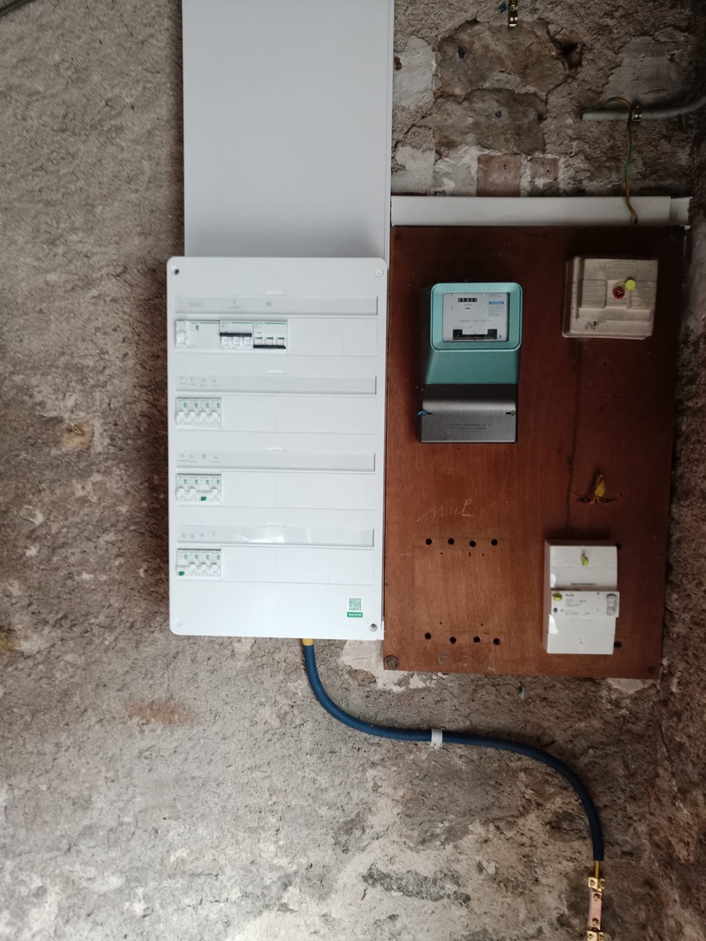 Nous avons également mis aux normes son tableau électrique en triphasé avec les disjoncteurs en Schneider pour protéger le maison.