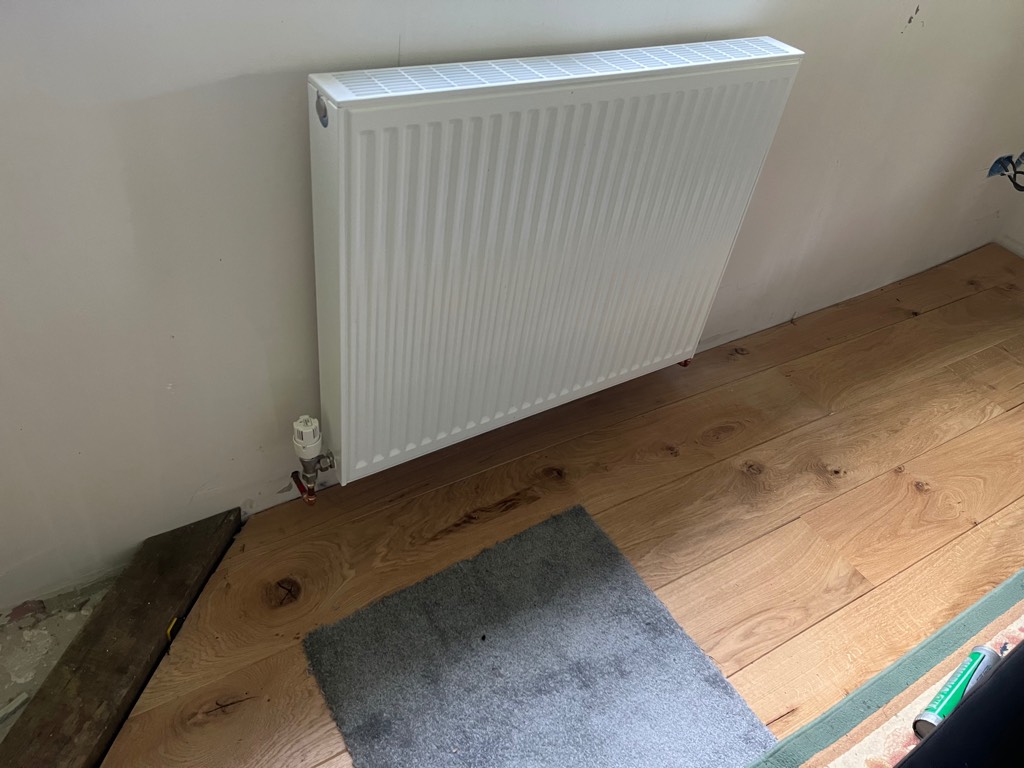Ce client nous a demandé d'ajouter un radiateur sur son système de chauffage car il avait fait un agrandissement. Nous étions passés deux fois pendant ce projet afin de passer la tuyauterie derrière le placo et après pour poser et brancher le nouveau radiateur.