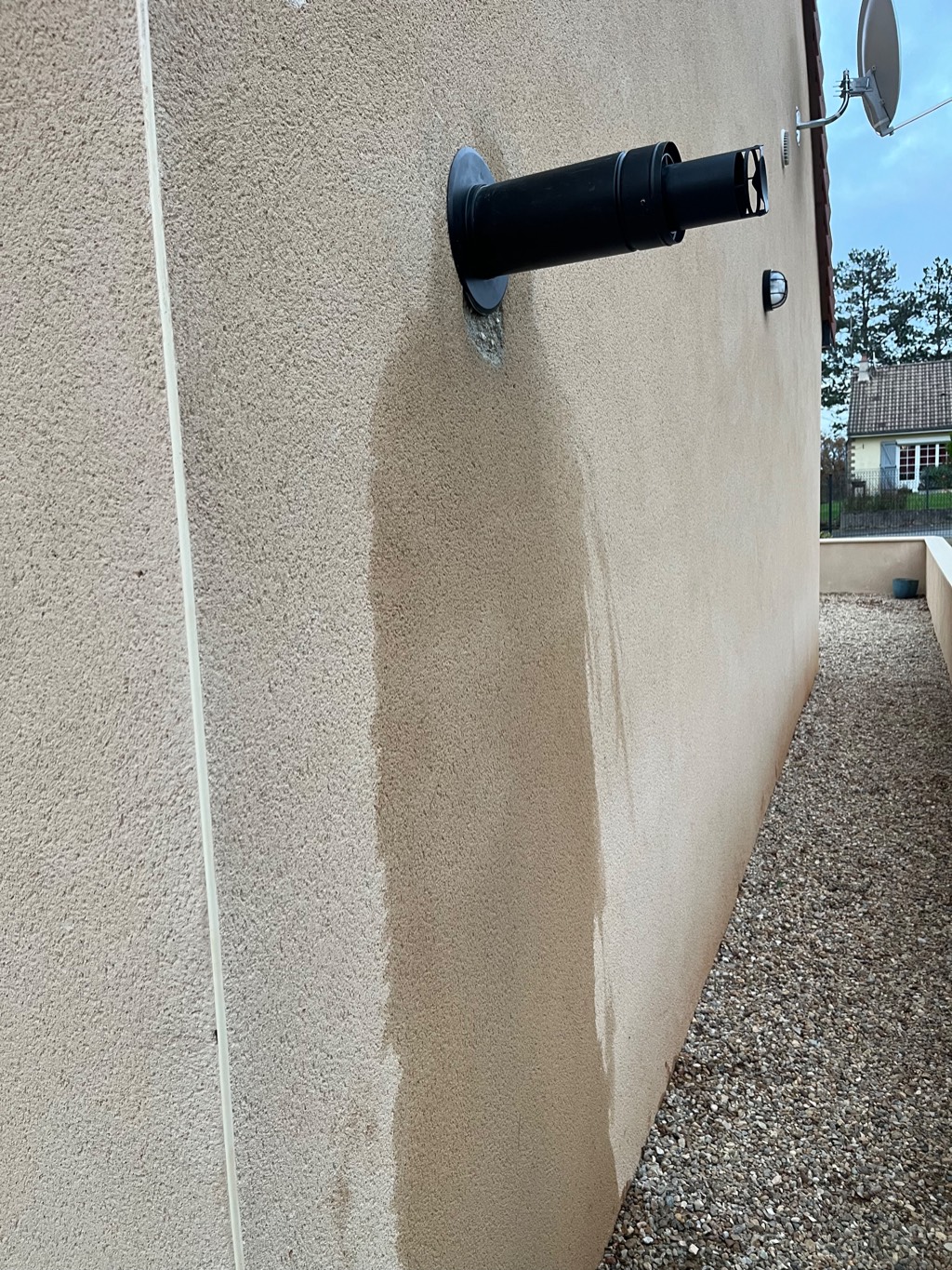 Nous avons constaté que les joints sur la fumisterie étaient HS provoquant l'entrée de fumée dans la pièce. Nous avons changé ce tubage mais en même temps nous avons vu que les normes de distance entre les matériaux combustibles n'étaient pas respectées. Nous avons donc changé une partie du placo qui était une plaque standard par un isolant polystyrène collé par une plaque BA13 resistant à la chaleur.