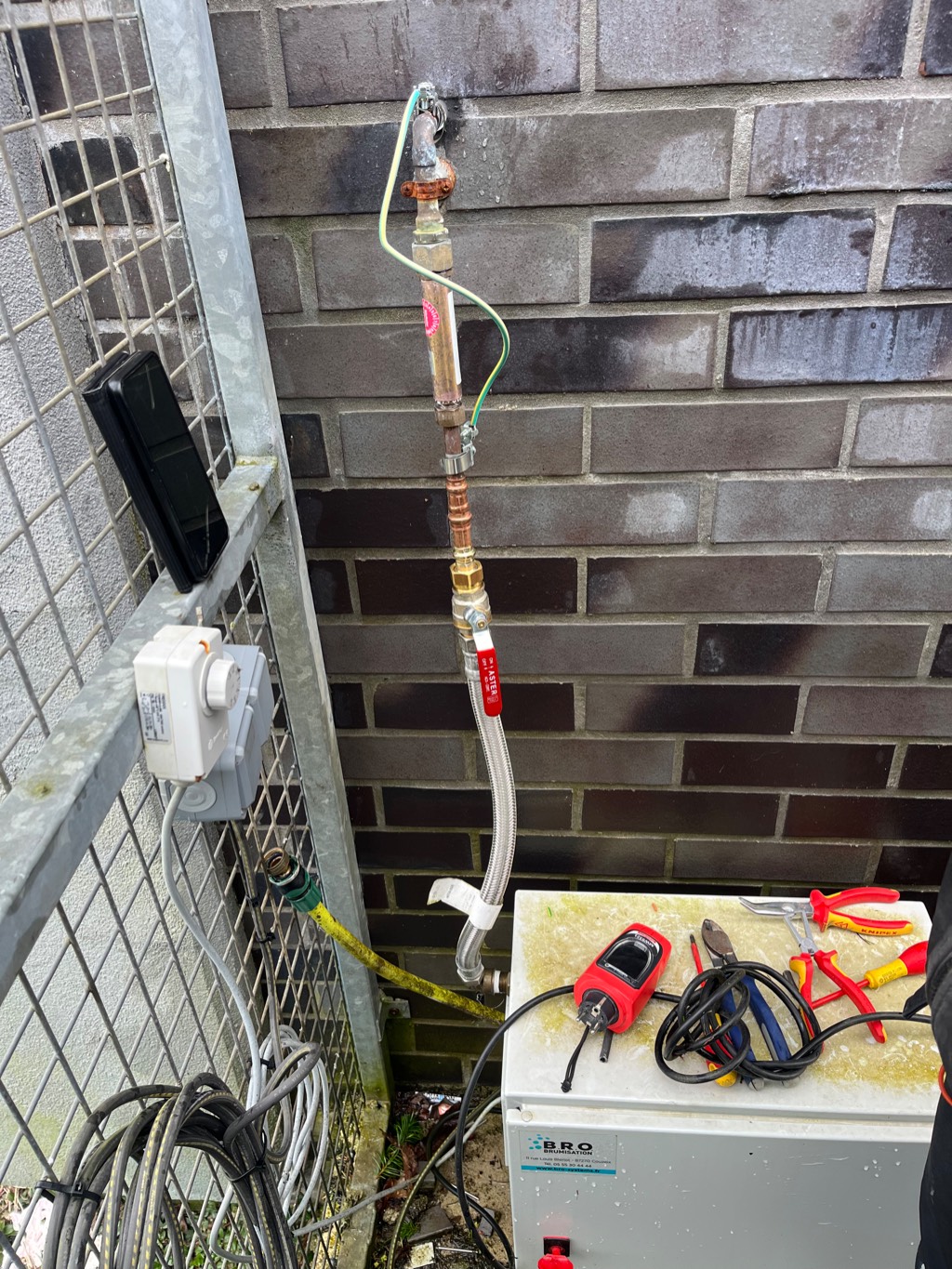 Lors de l'intervention nous avons réparé le tuyau d'arrivée qui avait gelé et réparé la prise d'alimentation électrique.