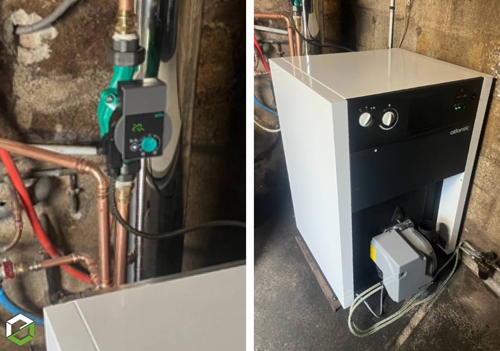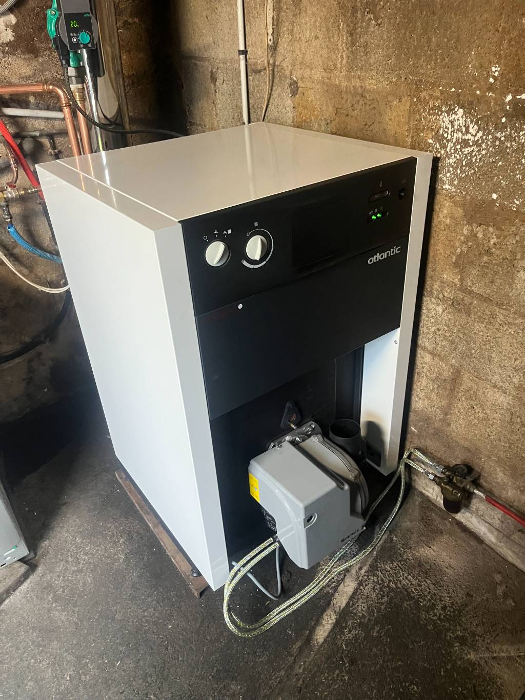 Ce client a entendu dire qu'on ne pouvait plus installer de chaudière fioul, ceci est exact pour les maison neuve mais nous avons toujours la possibilité en renovation tant que le brûleur et compatible F30 bio-fioul, ce qui est le cas pour ce brûleur de marque Perge monté sur une chaudière Atlantic.