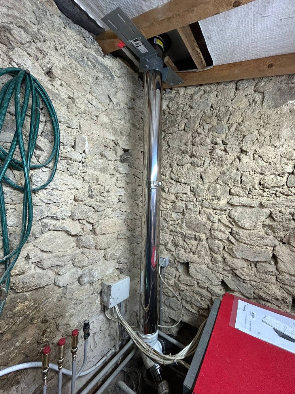 Nous avons tout de suite vu le problème : la ventouse de sa chaudière ne sortait pas correctement. Un mur à côté de la sortie empêchait de respirer correctement et donc le tirage n’était pas bon.