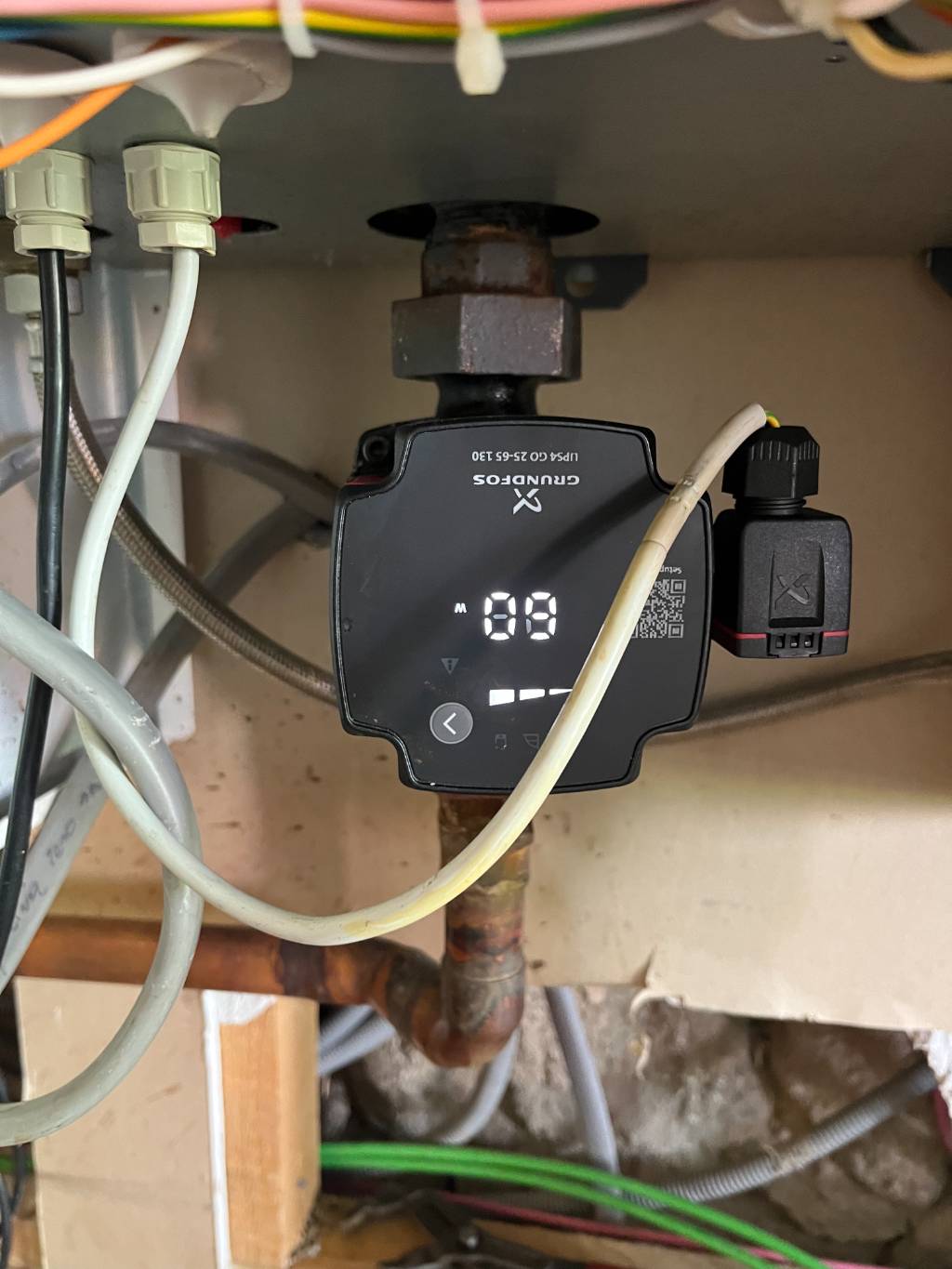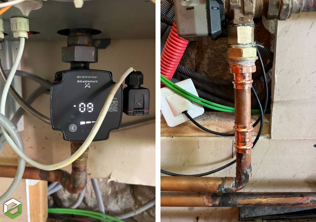 Lors de notre première visite, nous avons trouvé que la fuite venait du circulateur qui a fracturé. Nous avons pu remplacer ce circulateur par un circulateur Grundfos. Nous avons également trouvé une petite fuite sur un raccordement qui a été réparé en même temps.